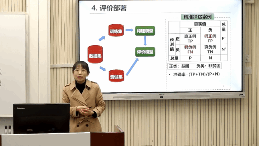 罗潇潇选取《数据挖掘理论与方法》中的“数据挖掘过程”章节参赛,以国家“精准扶贫”战略为主线,引导学生从定义任务、准备数据、构建模型到评价部署逐步推进,将政策需求转化为数据挖掘任务,使学生在掌握专业方法的同时,深刻领会科技服务社会的责任与使命,实现了理论知识教育与价值塑造的深度融合。